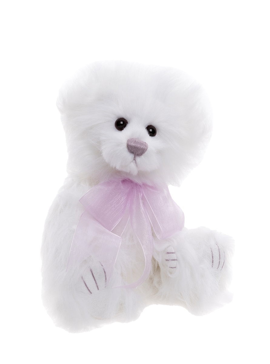 Introducing Amaris, a delightful addition to 2025’s Plush Collection. She is meticulously handcrafted from long, soft, white plush fur which gives her a wonderfully fluffy appearance. She features endearing black eyes, a hand-embroidered pale lilac nose and tickly toe detailing upon her paws. She also wears a matching organza bow around her neck which adds a touch of elegance. Her sweet expression and petite size make her an irresistible companion. Willl she be joining your hug today? Suitable for ages 3 years+. Bear height: 28cm/11/9.3 Bear Paws.