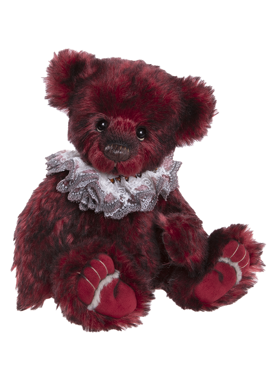Anna Gram is paw-geous deep red coloured bear from our 2024 Isabelle Collection, made from sumptuously dense alpaca and mohair fur. She features captivating dark eyes and her sculpted paw pads feature delightful tickly toes, complemented by a touch of grey fur underneath. She is elegantly finished with a beautiful lace collar. Numbered limited-edition of only 200. Recommended for ages 14 years+. Bear height: 34cm/13.5”/11 Bear Paws.