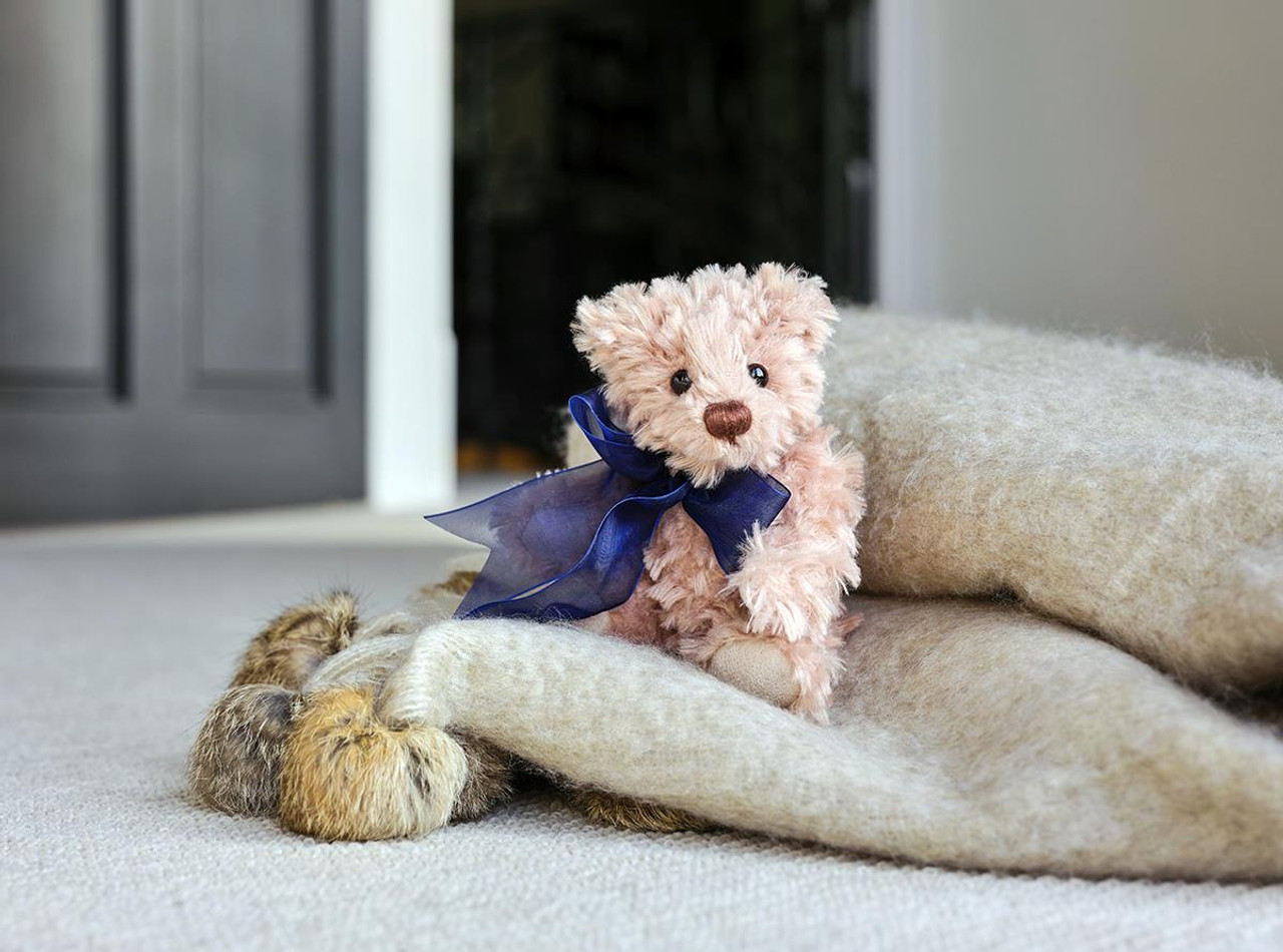 Jimminy is a tiny, fully jointed bear, made from super-soft plush and complete with a bear-utiful navy blue bow around his neck. Although petite, Jimminy has a huge personality! Recommended for ages 3 years +. Bear height: 20cm/8"/6.7 Bear Paws.
