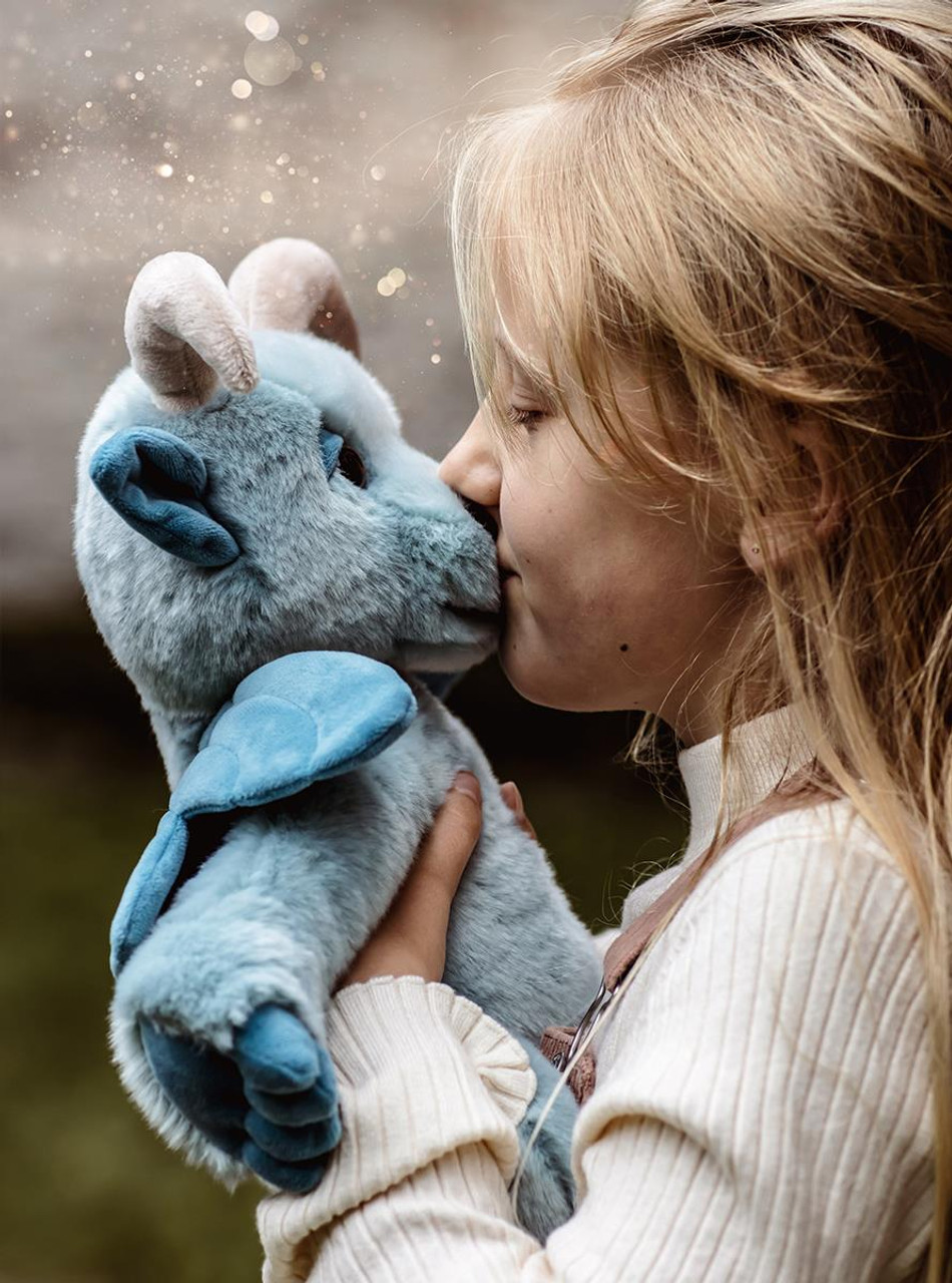 Made from beautifully soft sky-blue plush, Drawbridge stands out with his unique curly horns, gentle expression and softly sculpted wings. Whether he is standing guard over your dreams or flying through make-believe lands, Drawbridge is the perfect mythical friend. With a non-jointed design and fully machine washable material, Drawbridge is ready for both playtime and bedtime every day.