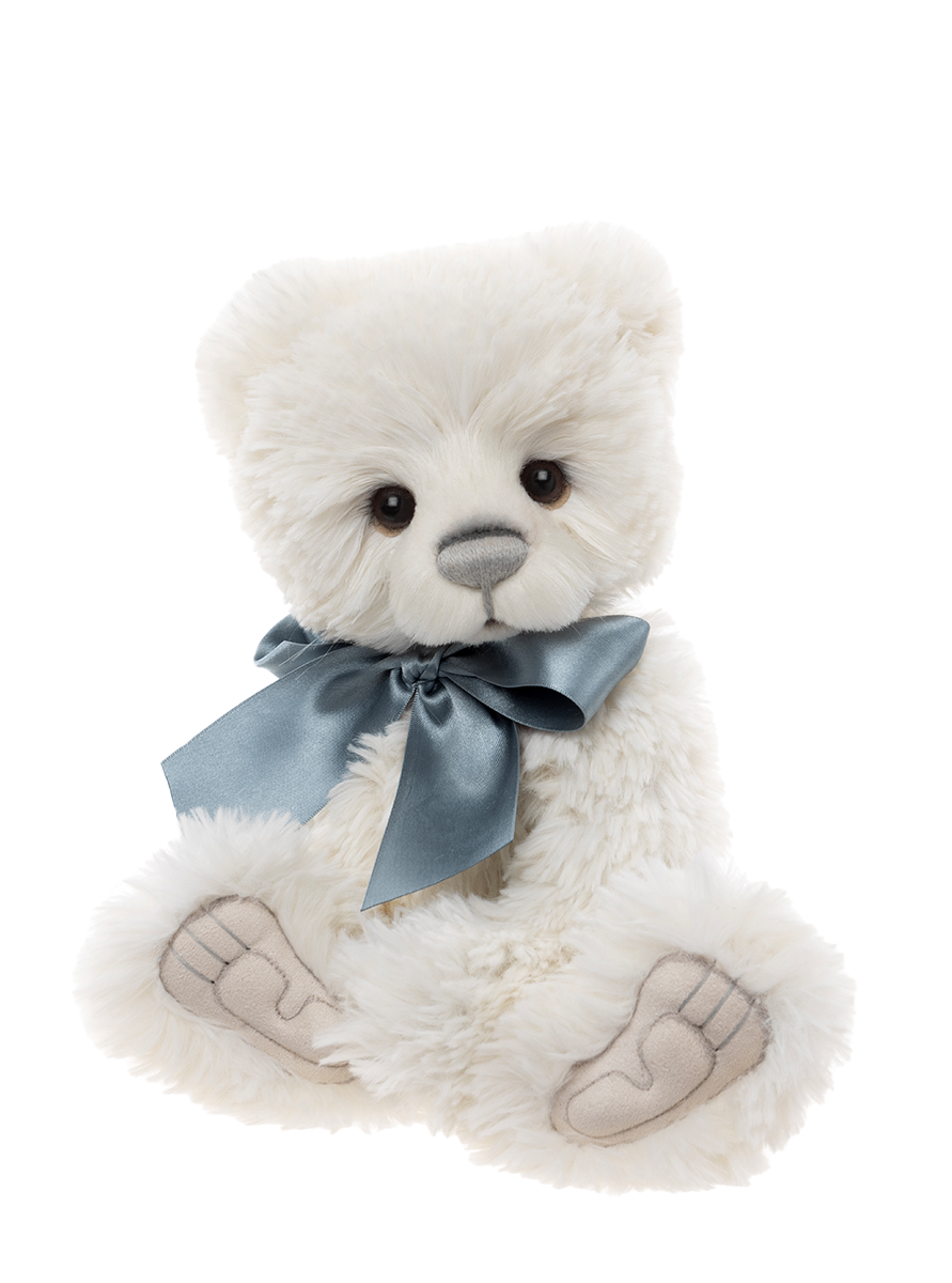 Maja is a fully jointed bear who brings quiet elegance and gentle charm to any hug. Her luxuriously dense white plush is sumptuously soft to the touch, making her a delight to hold. With thoughtfully crafted details like sculpted paw pads with tickly toe detailing, a delicately hand-embroidered nose and soulful eyes, Maja captivates at first glance. She’s adorned with a soft silvery blue bow which adds a graceful finishing touch. Suitable for ages 3 years+. Bear height: 34cm/13.5”/11.3 Bear Paws. To register your interest in Maja, please send us a message to headbear@charliebears.com.