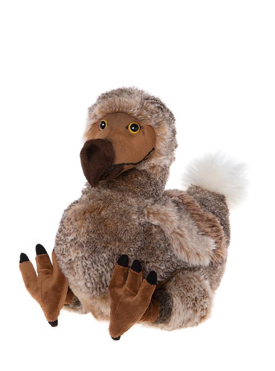 Meet Woozy, our ultra cuddly Dodo from our Bearhouse Collection. He has been sewn from sumptuously dense and soft plush in mottled shades of brown and dark beige. He has striking, two-tone yellow safety eyes and a distinct shaped cocoa beak, to help to create his comical persona. Woozy the Dodo is non-jointed and therefore, machine washable, makes him an ideal companion for young Charlie Bear fans. Suitable for ages 18 months+. Dodo height: 33cm/13”/11 Bear Paws.