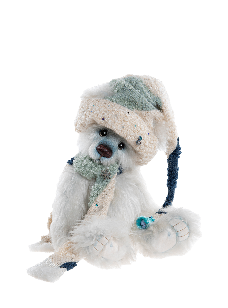 Meet our 24/25 Best Friends Club Exclusive bear Magellan, we are sure you will fall in love with him just as we have. Made from sumptuously soft alpaca and mohair fur in calming hues of icy blue and white, he is perfect for snuggling. As a hatty bear, we are sure he will be extremely paw-pular. Isn’t his matching cosy scarf adorable? From his expressive “who, me?” eyes to his delicately sculpted paw pads with tickly toe detailing, Magellan exudes personality and charm in every carefully crafted detail. Limited edition of just 500 pieces worldwide. Recommended for ages 14+. Bear height: 43cm/17”/14 Bear Paws.