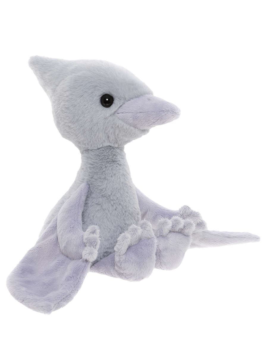 Wings Pterodactyl is a prehistoric charmer who’s traded the skies for snuggles. With a cloudy grey coat and soft, huggable body, this dinosaur buddy is all about comfort and play. Wings brings a little magic from the past into the present, making story time and cuddle time even more fun. Perfect for children and collectors who love characters with personality.