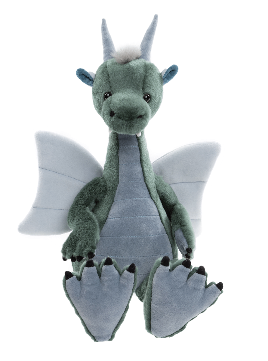 Spades is a charming dragon from the 2025 Bearhouse collection by Charlie Bears. Part of a whimsical dragon family inspired by playing cards, this non-jointed and machine washable companion is made from sage green and blue-grey super-soft plush. Spades is adorned with adorable horns, distinctive spinal detailing, beautiful wings and charming fur accents that add texture and character. Spades plump, huggable body and sweet facial features make them an irresistible friend. Suitable for ages 18 months+. Dragon height: 32cm/12.5"/10.7 Bear Paws.