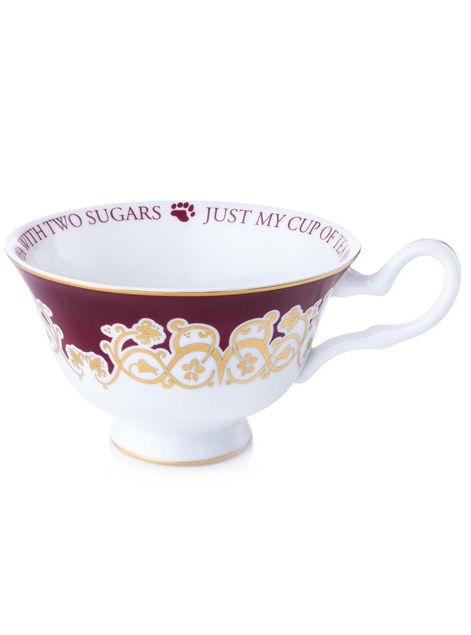 Our Charlie Bear Teacup and Saucer is pawfect for bear cubs who need to put their paws up for 5 minutes! Both the teacup and saucer are beautifully adorned with maroon and gold artwork. The saucer features a maroon pawprint, while the traditional, Victorian shaped teacup has text inside which reads 'Just my cup of tea with two sugars’. Get your paws on this stunning teacup and saucer now for a simply bear-illiant teatime every time! Limited to 600 pieces worldwide. Height: 7.2cm/2.8", Width: 15cm/5.9”, Length: 15cm/5.9”.