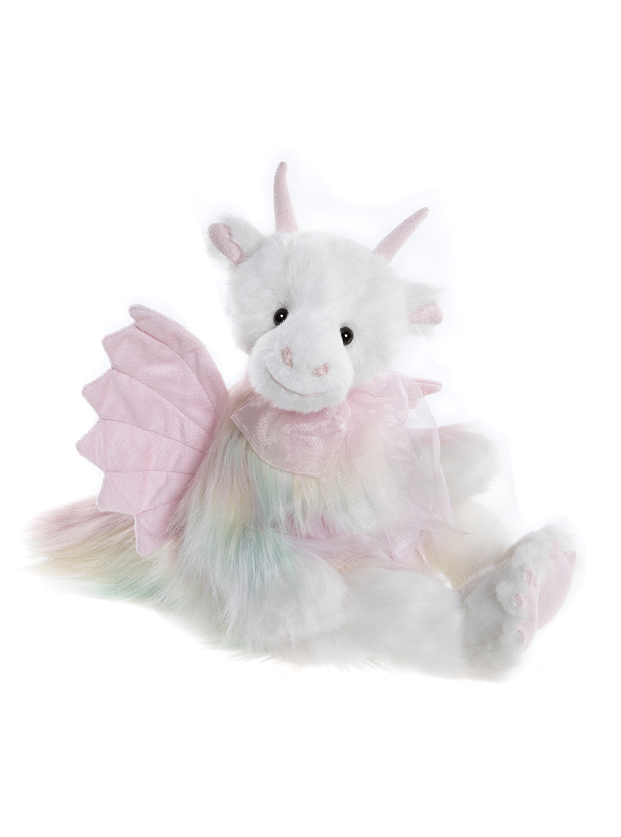 Kaida is a brand-new unique and whimsical addition to our 2024 Plush Collection. Kaida is a fully jointed dragon, suitable for collectors aged 3 years and over and can be surface cleaned with care. Crafted from super-soft white and baby pink plush, Kaida also features pretty pastel rainbow shades, inspired by Japanese culture. Named 'little dragon' Kaida will add a touch of magic to your collection. Dragon height: 36cm/14"/12 Bear Paws.