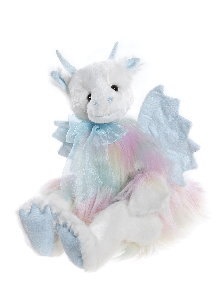 Kenna is a brand-new beautiful Dragon for 2024 and part of our Plush Collection. Kenna is fully jointed, suitable for collectors aged 3 years and over and can be surface cleaned with care. Crafted from super-soft white and baby blue synthetic plush, Kenna also features pretty pastel rainbow shades. Dragon height: 36cm/14"/12 Bear Paws.
