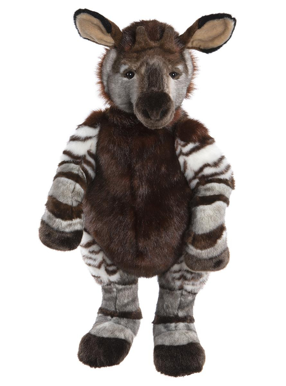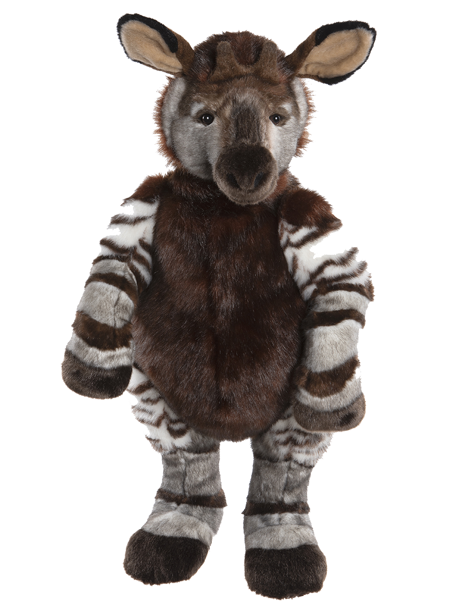 At a huge 30” tall, the adventurous Trailblazer will watch over your hug and share great cuddles with you. Inspired by the Okapi, native to Central Africa, Trailblazer has rich-brown plush fur, with bold white stripes. He has standing paws and two tiny horns called ossicones on his forehead, helping him to survive in the deep wilderness. Suitable for ages 3 years +. Limited in production to 1000 pieces. Okapi height: 76cm/30"/25.3 Bear Paws.