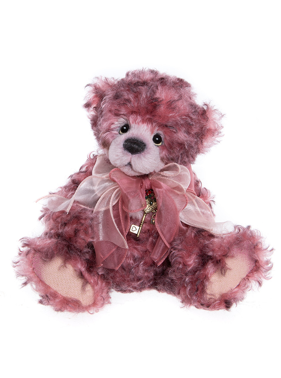 Meet Lilliput, a beary special small Isabelle Collection bear crafted from a combination of luxurious curly dark red, dark grey and white mohair and alpaca fur. She has flat paw pads, a hand-stitched nose, airbrushing and soulful eyes for an unforgettable face. She wears a gorgeous double organza bow around her neck, as well as a key to your heart necklace. Limited edition of only 300 pieces globally. Recommended for ages 14 years +. Bear height: 32cm/12.5"/11 Bear Paws.