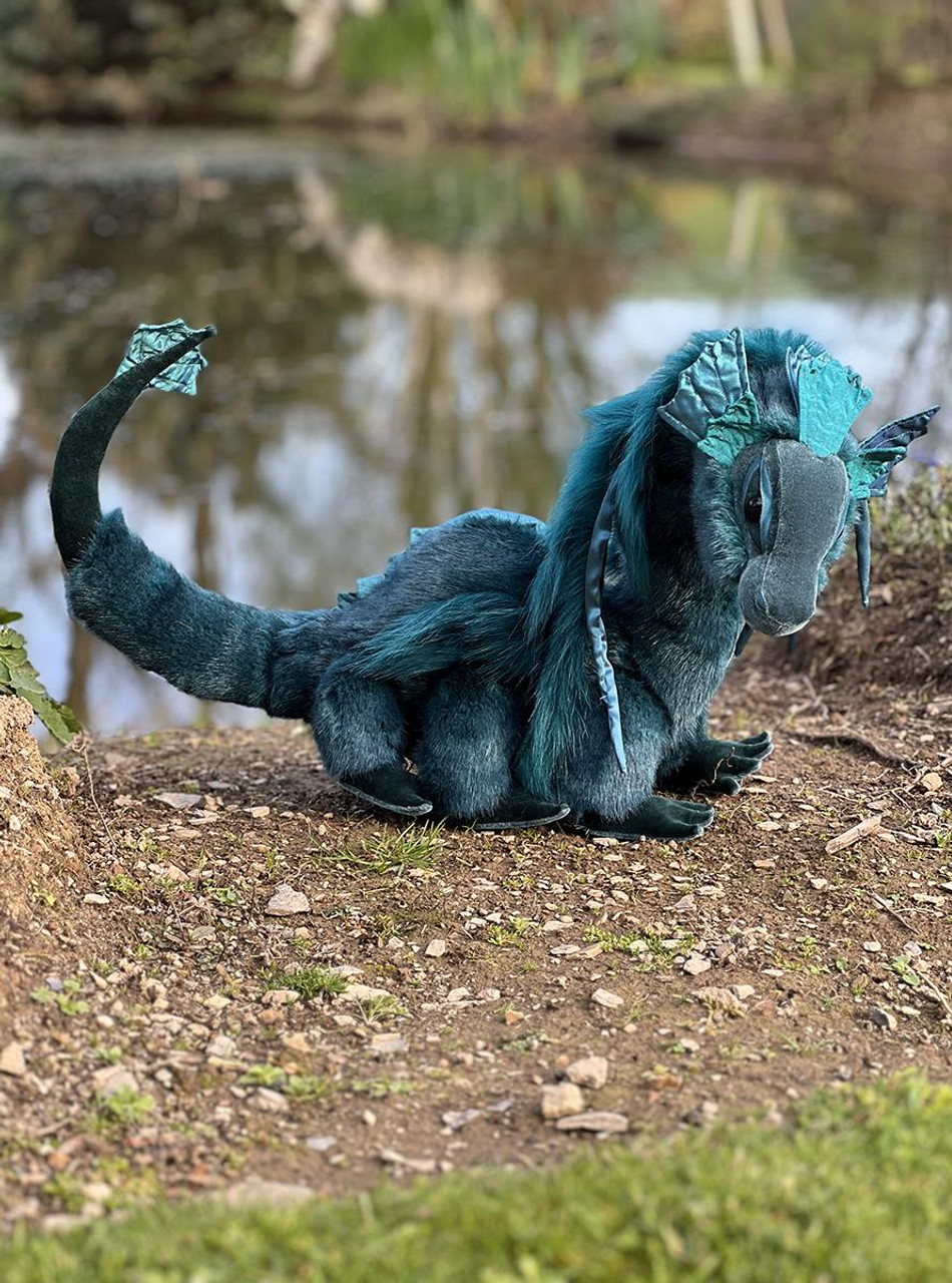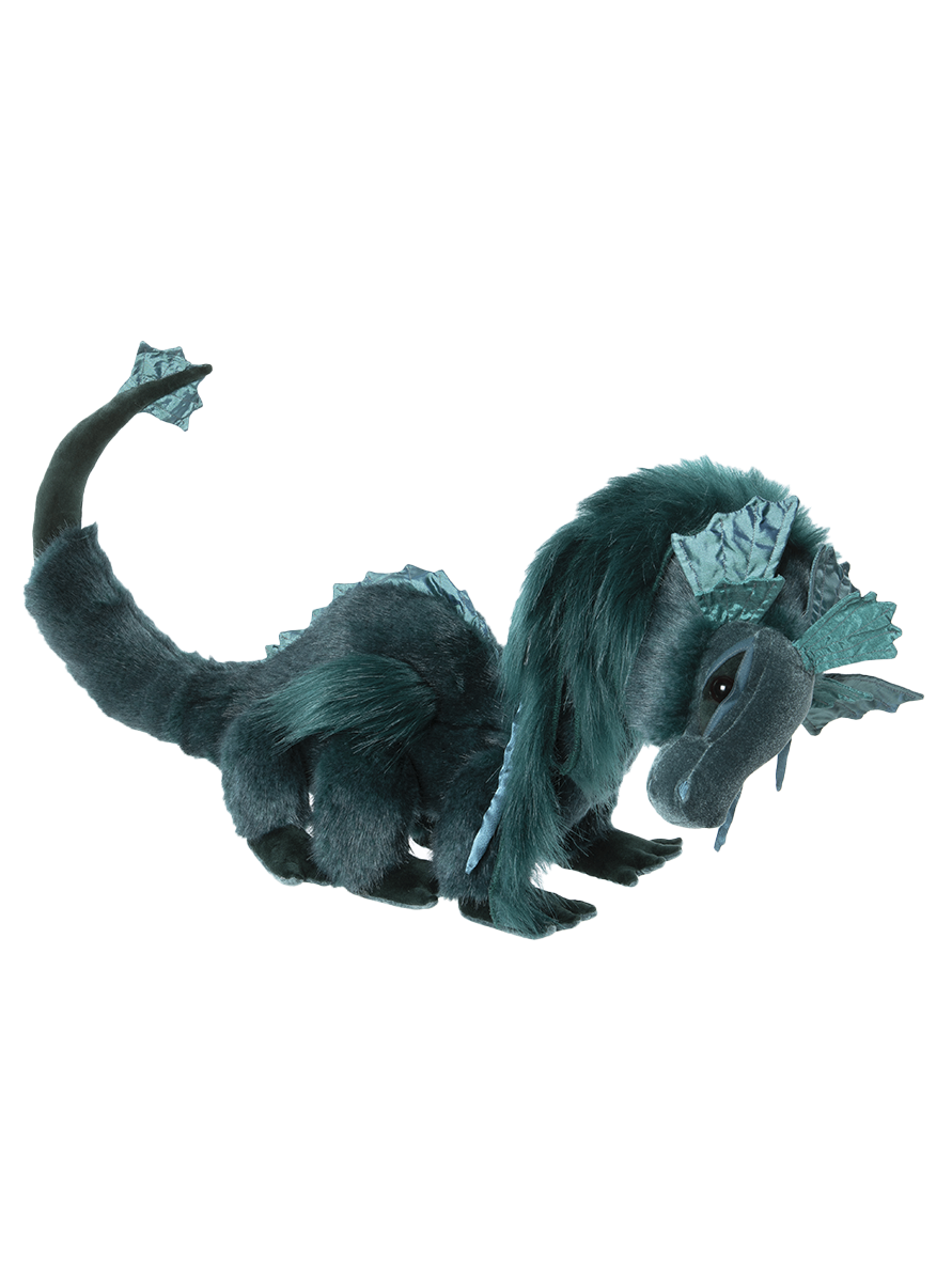 The Loch Ness Monster features a blend of short and long-pile plush that is luxuriously soft, showcasing rich emerald green hues. With six legs, she stands proudly on her own, exuding a majestic presence. Her dark, captivating eyes, flared nostrils, flowing mane, and satin spines along her back create an enchanting sight. Is she a myth or a legend? Limited edition of only 1000 pieces worldwide. Suitable for ages 3 years+. Loch Ness Monster height: 34cm/14”/12 Bear Paws.