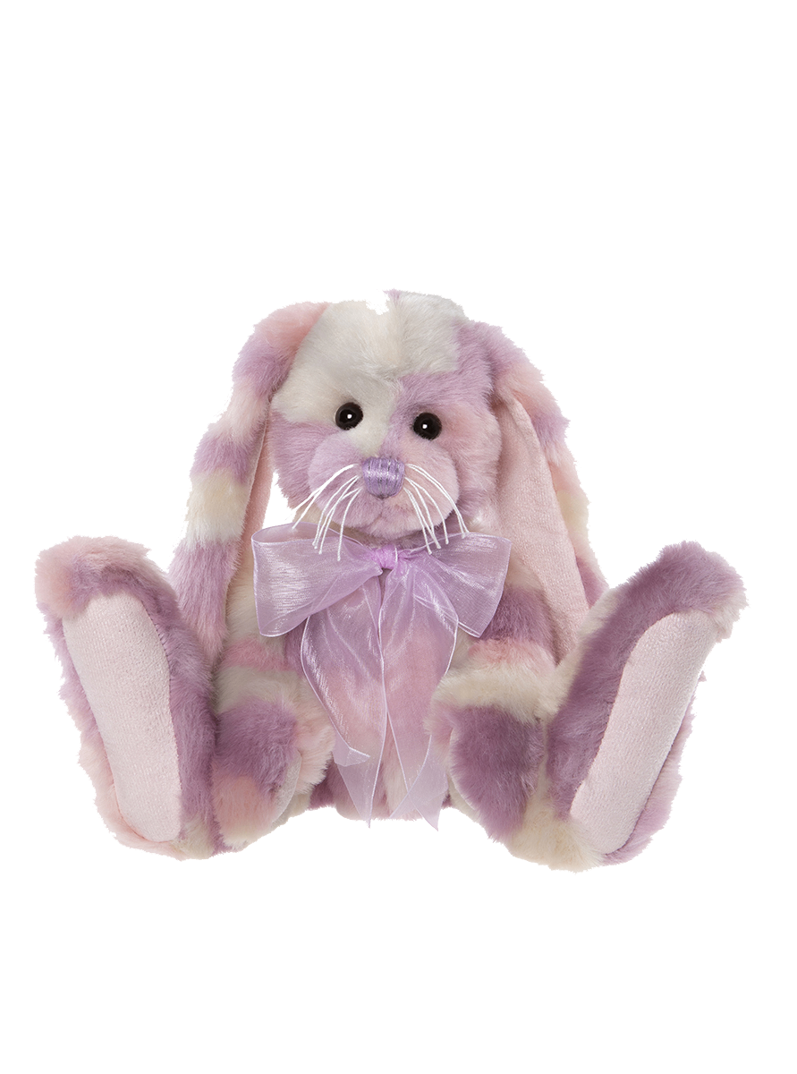 Pink Tulip, our super-soft, fully-jointed rabbit from The Labyrinth Collection 2024 would love to join your hug! Pink Tulip features beautiful pastel pink, lilac and white plush fur in a patch design and is finished with a large organza bow around her neck. Her adorable expression is sure to capture your heart. Look for her bear sibling, Hollyhock! Suitable for ages 3 years +. Surface clean with care. Rabbit height: 30cm/12"/10 Bear Paws.
