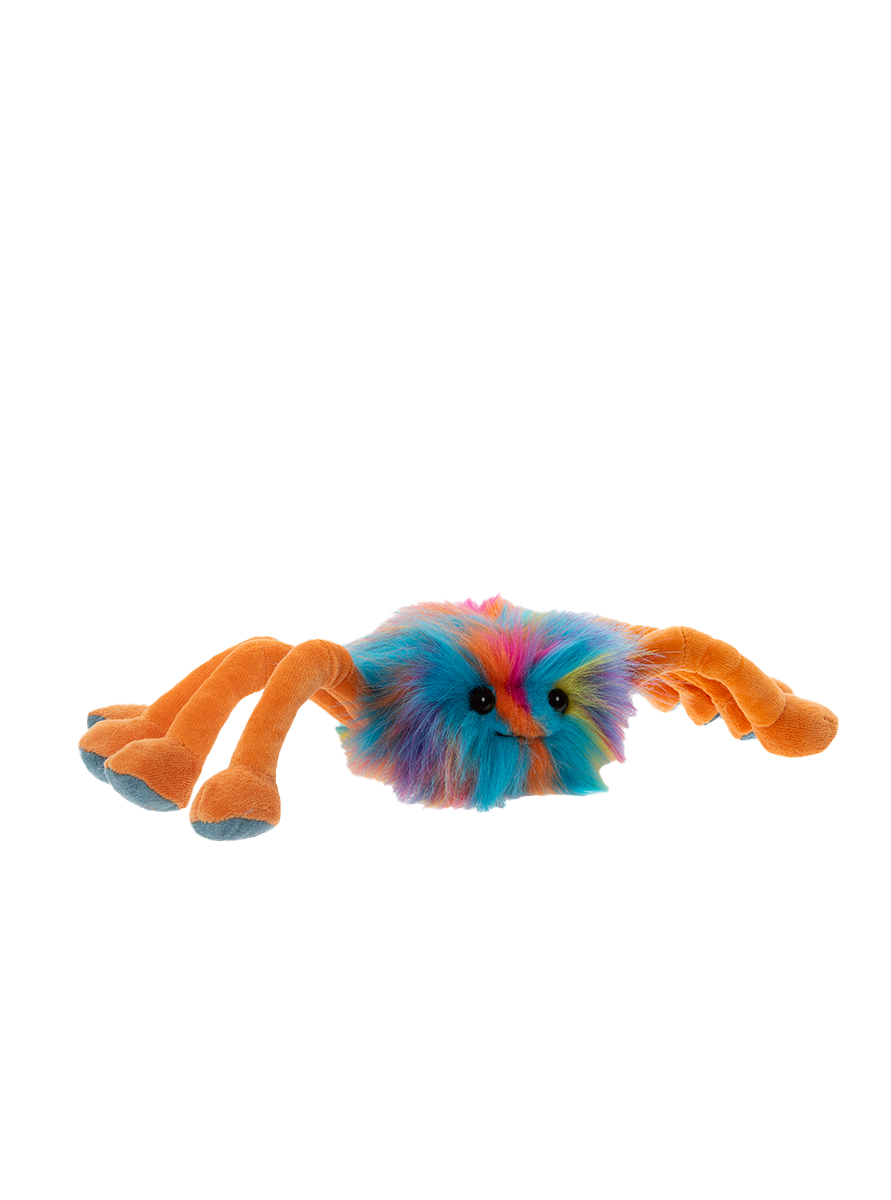 Meet Cecil, the Daddy Spinner – the wise and warm-hearted leader of the Spinner family. With his plush rainbow fuzz, velvety orange legs, and warm, welcoming eyes, Cecil is the kind of spider you’ll want to keep close. His soft, huggable body makes him the ultimate comforting companion – whether you’re settling in for story time or simply looking for a reassuring snuggle.